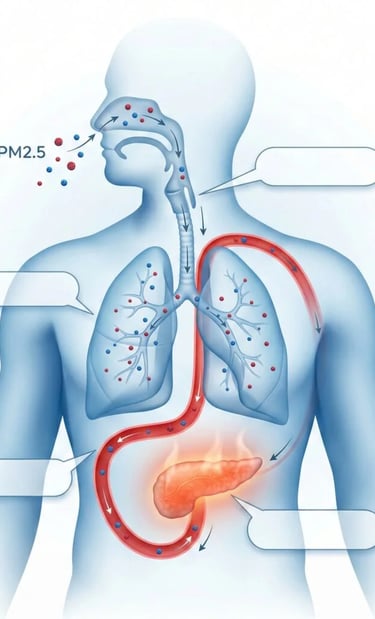 Microscopic airborne particles known as heavy metal clusters have been linked to systemic inflammation that may interfere with pancreatic function.
